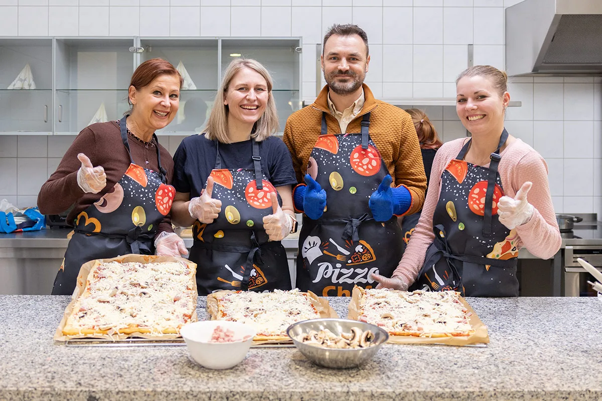 Mittagspause mal anders. Pizzaduft lag in der Luft! Zur Abwechslung wurde für alle Kolleg*innen in der Mittagspause eine tolle Pizzaparty organisiert. Die Pizzen dafür wurden von unserer fleißigen Pizzacrew und der Geschäftsführung selbst gebacken. Das Ergebnis? Super lecker! Deshalb ließen es sich alle Mitarbeiter*innen schmecken und gingen danach wieder gestärkt an die Arbeit. Das ganze Team freut sich bereits auf das nächste Highlight!